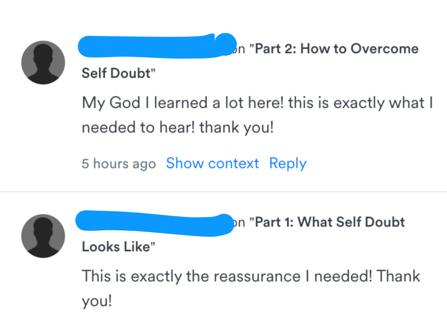 All participants can comment and post below the video lesson, and reply to any post. This builds community, conversation, and healing.Ā Ā